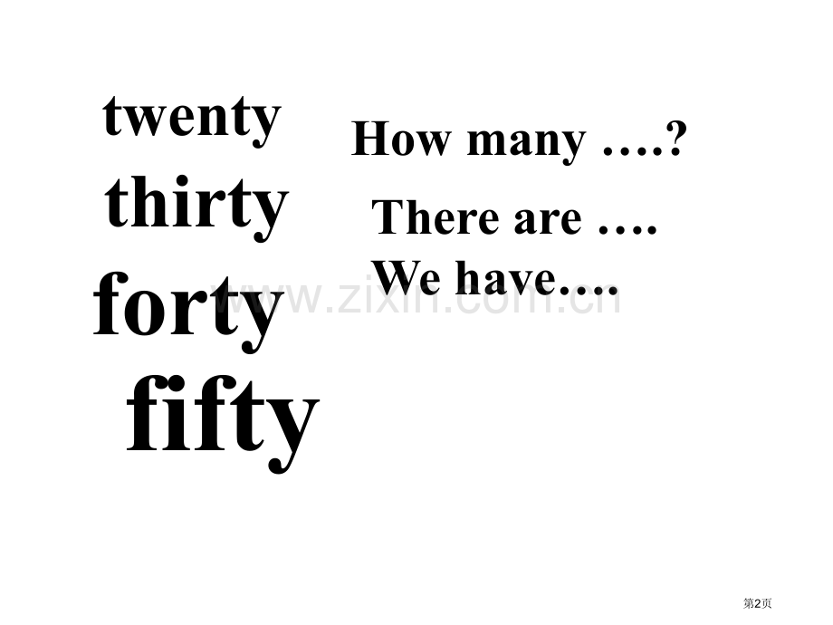 人教新版四年级英语下册第1页twentythirtyfortyfiftyHow many.?There are.We have.第2页put awayput away your pen,pencil.Put away all your school things.第3页watch TVI watch TV.Can I watch TV?第4页go to bedIts time to go to bed.第5页get up第6页brush(your)teeth第7页wash(your)face第8页have(your)breakfast第9页maths class第10页lunch第11页pizza第12页第13页have dinner第14页pork第15页beefWhat do we have?We have第16页Its time for.Its time to.第17页第18页第19页第20页第21页第22页第23页第24页第25页第26页第27页第28页