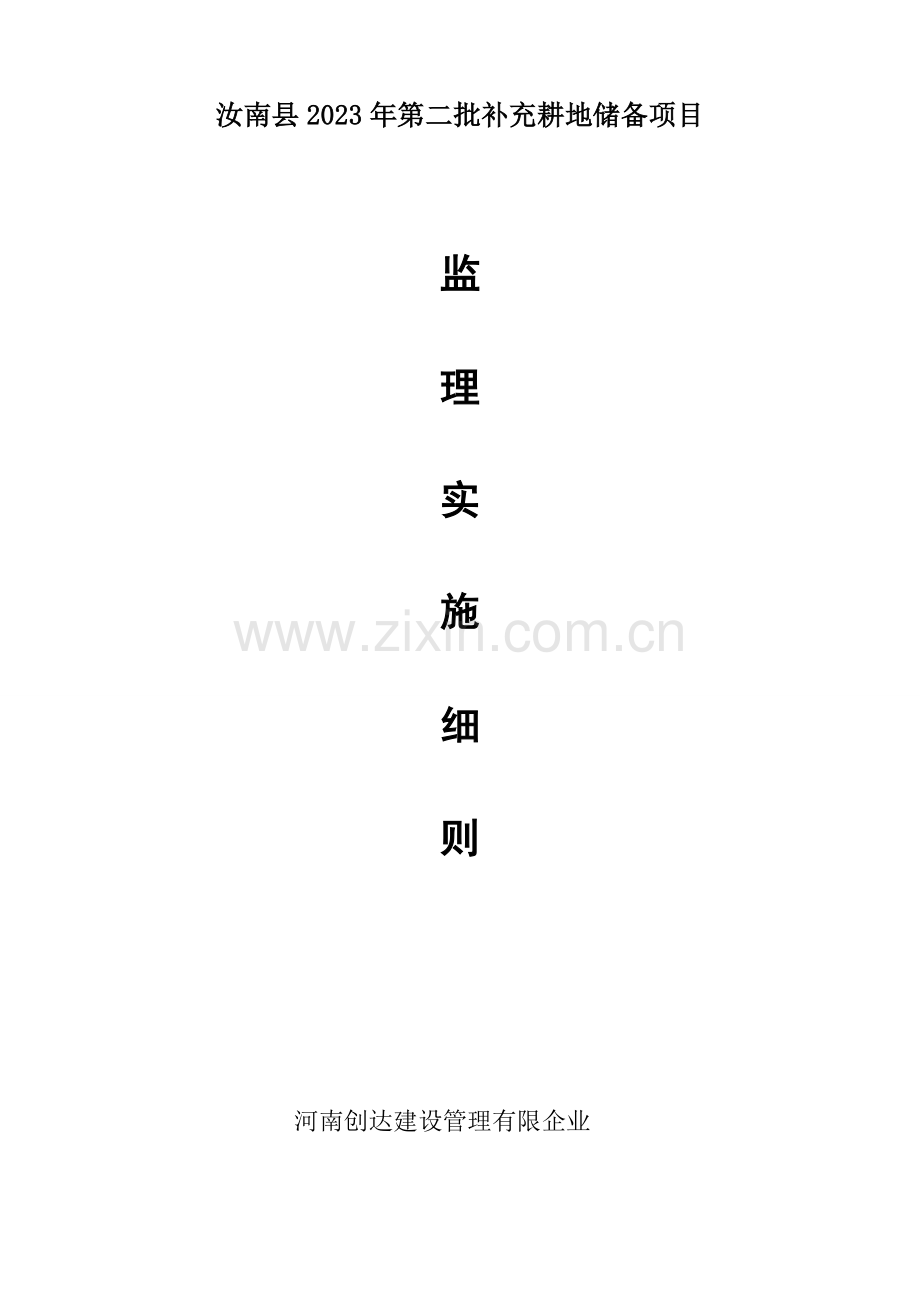 本细则合用于土地整顿项目工程旳监理,本细则根据项目土地平整项目、及生产田间道路工程、水利设施中农渠、沟渠、桥涵、及机井等配套设施工程。