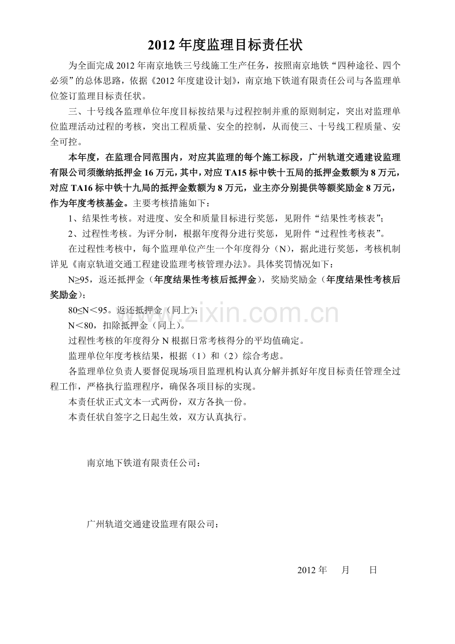 2012年度监理目标责任状
