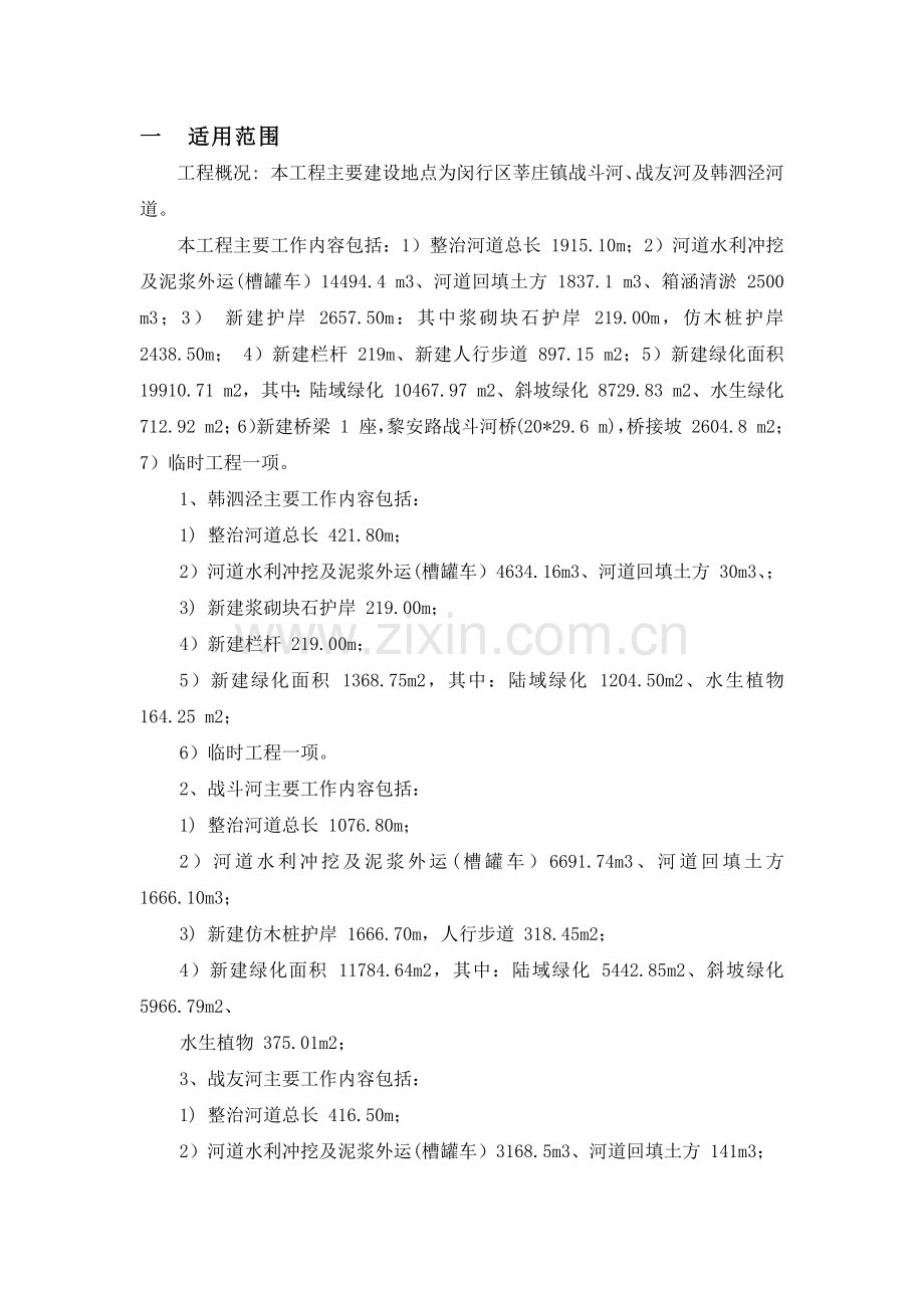 工程概况: 本工程主要建设地点为闵行区莘庄镇战斗河、战友河及韩泗泾河道。