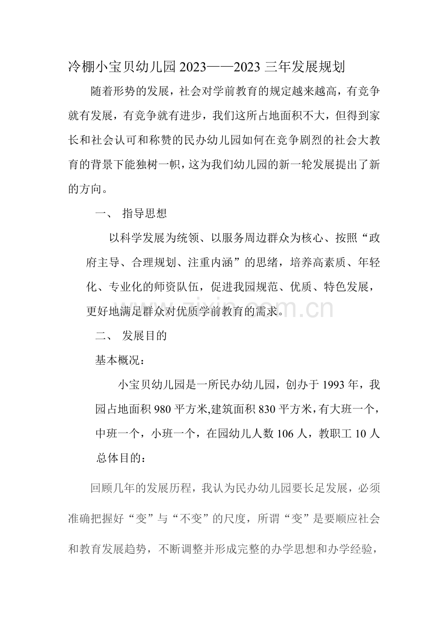 冷棚小宝贝幼儿园2023——2023三年发展规划