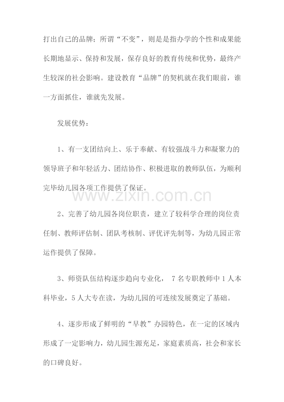 4、园舍扩建后,5年内逐步形成具有一定影响力的儿园,依托领导支持,打造品牌,形成一所现代化新园所。