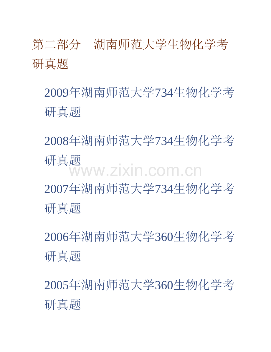 目录第一部分湖南师范大学706普通生物化学考研真题2013年湖南师范大学706普通生物化学考研真题(回忆版)2010年湖南师范大学706普通生物化学考研真题2009年湖南师范大学706普通生物化学考研真题2008年湖南师范大学706普通生物化学考研真题第二部分湖南师范大学生物化学考研真题2009年湖南师范大学734生物化学考研真题2008年湖南师范大学734生物化学考研真题2007年湖南师范大学734生物化学考研真题2006年湖南师范大学360生物化学考研真题2005年湖南师范大学360生物化学考研真题2004年湖南师范大学生物化学考研真题第一部分湖南师范大学706普通生物化学考研真题2013年湖南师范大学706普通生物化学考研真题(回忆版)4糖的活性部位,单纯酶活性部位和结合酶活性部位有什么不同?5阐述糖的生物学意义。2010年湖南师范大学706普通生物化学考研真题2009年湖南师范大学706普通生物化学考研真题2008年湖南师范大学706普通生物化学考研真题第二部分湖南师范大学生物化学考研真题2009年湖南师范大学734生物化学考研真题2008年湖南师范大学734生物化学考研真题2007年湖南师范大学734生物化学考研真题2006年湖南师范大学360生物化学考研真题2005年湖南师范大学360生物化学考研真题2004年湖南师范大学生物化学考研真题