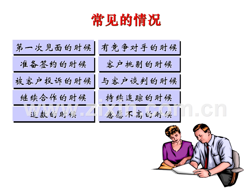 PAC客户行为分析与应对技巧,,广告媒介高级培训班,李克勤(Karllee)Mobil:13910750504E-mail:kj877@,第一次见面的时候,准备签约的时候,被客户投诉的时候,继续合作的时候,有竞争对手的时候,客户挑剔的时候,与客户谈判的时候,持续追踪的时候,追款的时候,意愿不高的时候,常见的情况,但是不管用怎样的方式去看待客户的态度时记住!我们面对客户的任何一种行为都是会产生互相对应的关系,重要的引导模式,注意!用较成熟式的行为与人沟通比较妥当。引导对方作出。维系双方。维持双方。我方要争取。我方不时的提出创意。我方提出道歉可获对方谅解。保持冷静,不要用解决问题。用有的行为对他。,成人式的行为,平衡的沟通,稳定的情绪,主动发问,爱心家长式,辩论的方式,环境条件时间缓急对方的人(成见/误解/偏见)急需解决的事心中原本不满的事,会改变行为个性的因素,鉴别顾客行为的技巧:小心聆听—听清楚听明白声调语气—情绪语义寓意字句和用词—重点问题点抱怨点面部表情—喜怒哀乐忧蔑欣侮肢体动作—强烈性重复性突发性,鉴别客户行为的依据,谨慎面对与处理客户的不满,对方抱怨时的行为举止是成熟型还是幼稚型。弄明白客户对我们有误会(成见)的原因。服务不好—需求未被满足。判断错误—导致严重损失未达效果—延误商机不及满意—没有承诺语言冲突—词不达意,不要置投诉于不理不要隐藏投诉莫以为是针对个人不要抗拒投诉不要怒视投诉不要夸大投诉,招引越大的误解,酿成越大的误解,造成越复杂的误解,演变越大的误解,自造越大的误解,陷入越大的误解,接受抱怨的要点,处理抱怨五步曲:收集资料整理资料提出方案付出行动在能力范围内。要取得客户的同意要多运用成人式的行为去发问,提议及道歉。,如何处理客户的投诉,,,,,,发问与记载,不停思索与探讨,设想可以解决的方法,行为科学简介,先观後语,先听再语,先闻後问,先查後证,思维过滤,究其疑点,反复论证,他用何种态度向我说话,他说话内容的真正含义,我要听明他的真正含义,要收集相关资料来佐证,要仔细筛选所有的论证,锁定焦点问题寻求解答,持续检讨所执行的方法,,如何在投诉中应用行为科学,冷静(成人型行为)态度正确(成人型行为)不要置之不理不要搁置一旁不要与人争辩不要以为针对自己小心听了解事情真相,不要置之不理不要搁置一旁不要与人争辩不要以为针对自己,重复要点(成年型行为)衡量投诉的严重性(成年型行为)拟定处理投诉程序(成年型行为)提供其他解决问题的方法(成年型行为)整个过程保持礼貌谦和(成年型行为),行为科学简介,Good!,第一次见面的时候准备签约的时候客户投诉的时候要求继续合作的时候追款的时候有竞争对手的时候客户挑剔的时候与客户谈判的时候持续追踪的时候意愿不高的时候,运用技巧,家长型,成人型,幼儿型,P,A,C,P,A,C,A,P,C,,,,P,A,C,A,P,C,,,,我是老大,尊重专业,摇摆不定,1.第一次见面的时候,注意倾听,表现专业,抓住要点,技巧,,,对方心态,独尊,互惠,善变,2.准备签约的时候,我要最好,委以重任,需求无度,绝对满意,值得信赖,不急不缓,技巧,对方心态,P,A,C,A,P,C,,,,独尊,互惠,,,善变,3.客户投诉的时候,你就是不对,情有可原,漫无要求补偿,现行致歉,下不为例,不急合作,技巧,对方心态,P,A,C,A,P,C,,,,独尊,互惠,,,善变,4.要求继续合作的时候,对我百依百顺,共享商机,出现百般挑剔,优于前次,质量保证,敬候佳音,技巧,对方心态,P,A,C,A,P,C,,,,独尊,互惠,,,善变,5.追款的时候,反客为主,寻求妥协,虚伪狡诈,以理相知,互表诚意,哀兵姿态,技巧,对方心态,P,A,C,A,P,C,,,,独尊,互惠,善变,,,6.有竞争对手的时候,藉机膨胀,合理比较,恶性削价,我最理解,诚意实力,酌情让步,技巧,对方心态,P,A,C,A,P,C,,,,独尊,互惠,善变,,,7.客户挑剔的时候,非听不可,好要更好,举棋不定,悉听尊便,用心专心,你请我愿,技巧,对方心态,P,A,C,A,P,C,,,,独尊,互惠,善变,,,8.与客户谈判的时候,听令办事,互谋合作,朝令夕改,有迹可循,合则两利,不急合作,技巧,对方心态,P,A,C,A,P,C,,,,独尊,互惠,善变,,,9.持续追踪的时候,随传随到,明白指示,慢来不急,以礼相待,藉机表白,边行边看,技巧,对方心态,P,A,C,A,P,C,,,,独尊,互惠,善变,,,10.意愿不高的时候,时改时定,言明一切,故作玄虚,放线钓鱼,我最用心,静观其变,技巧,对方心态,P,A,C,A,P,C,,,,独尊,互惠,善变,,,P,C,,,,P,A,C,A,,,1.第一次见面的时候,,我做老大,我相信,我怀疑,愿闻其详,强调专业,全力协助,技巧,对方心态,P,A,C,A,P,C,独尊,互惠,善变,,,2.准备签约的时候,听我的,一定成,担心忧虑,诉之以礼动之以情,增加信心,面面俱到,技巧,对方心态,,,,P,A,C,A,P,C,独尊,互惠,善变,,,3.客户投诉的时候,追根究底,问明原委,疑虑加大,提出佐证,一五一十,贯彻检讨,技巧,对方心态,,,,P,A,C,A,P,C,独尊,互惠,善变,,,4.要求继续合作的时候,你还行吗,我有信心,我很犹豫,没问题,很荣幸,不担心,技巧,对方心态,,,,P,A,C,A,P,C,独尊,互惠,善变,,,,狐假虎威,力求体恤,虚虚实实,有约可寻,共体时艰,我更无奈,技巧,对方心态,,,,P,A,C,A,P,C,独尊,互惠,善变,,,5.追款的时候,6.有竞争对手的时候,提出警讯,慎重考虑,意向不定,我最理想,再展实力,默契为要,技巧,对方心态,,,,P,A,C,A,P,C,独尊,互惠,善变,,,7.客户挑剔的时候,不可原谅,好上加好,信心降低,立即修正,专业专心,无心之过,技巧,对方心态,,,,P,A,C,A,P,C,独尊,互惠,善变,,,8.与客户