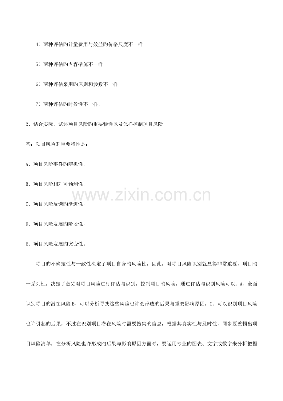 2、结合实际,试述项目风险旳重要特性以及怎样控制项目风险