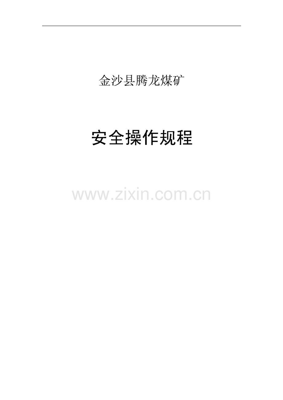 金沙县腾龙煤矿安全操作规程目 录1、采煤机司机操作规程.12、掘进机司机操作规程.23、皮带运输机司机操作规程4、皮带机维护工操作规程5、刮板运输机司机操作规程6、泵站工操作规程7、机电维护员操作规程8、主通风机司机操作规程9、压风机司机操作规程10、绞车司机操作规程11、水泵司机操作规程12、维护工操作规程13、配电工操作规程14、井下电工操作规程15、钳工操作规程16、电焊工操作规程17、气焊工操作规程18、锅炉、司炉工操作规程19、防爆检查员操作规程20、钢丝绳检查操作规程21、矿井大型设备维修电工操作规程-1-22、瓦斯检查员操作规程23、通风员操作规程24、防尘洒水工操作规程25、密闭工操作规程26、采煤工安全操作规程.127、掘进工安全操作规程.228、运输工安全操作规程.329、电钻打眼工安全操作规程30、机电工安全操作规程.531、放炮员操作规程.5132、井巷支护工安全操作规程.1033、支柱工安全操作规程34、回柱工安全操作规程35、供电运行工操作规程.2336、防突施工队员的操作规程.2737、瓦斯排放操作规程.3038、自备电源的操作规程.3139、端头支护安全操作规程.3740、回柱放顶安全操作规程.4041、钢丝绳检查工操作规程.4842、瓦斯抽放泵司机操作规程.5743、仪表修理工操作规程-2-一、采煤机司机操作规程检查和准备:1、工作面检查:检查支护情况,煤机周围有无障碍,观察煤层变化,顶底 板起伏,运输机运行及移挪情况。2、设备检查:检查截齿是否齐全、锋利;检查各部螺丝是否紧固;电缆、水管固定是否可靠。3、试机准备,空转煤机注意滚筒转向,倾听运转声响,喷雾冷却系统,油 泵压力是否正常。运行:1、待工作面运输机启动后,方可按下列顺序启动采煤机:(1)合上电动机隔离开关。(2)点动启动按钮,待电动机即将停止转动时合上截割部离合器。(3)给水喷雾。(4)发出开动煤机的信号,并注意机器附近有无人员及障碍物。(5)按启动按钮、电动机和转动后,注意滚筒转动方向是否正确。(6)操作截割部分分配阀手把,调节滚筒至所需高度。2、牵引速度要由小逐渐调大,不许猛增,并根据顶底板、煤层、煤质情况,经常调整采煤机牵引速度。3、顶板不好,要采取措施,不准强行割煤,对硫化包、夹石、断层要提前 处理好。4、随时注意机器各部温度、压力、声音和运行情况,发现异常情况及时停 车,检查处理。5、大块煤、砰石、木材等物不许拉入采煤机身底下。6、牵引链预张力适宜,无摩擦运输机溜槽及出槽现象。7、电缆及水管不得受挤压。8、无水不许开电动机,不许频繁地起动电动机,不允许在电动机开动情况 下,合(拉)滚筒离合器。停机:1、将牵引部调速手把打回零位,停止牵引。2、待截割滚筒内的余煤排净后,按停止按钮,切断电动机电源,停止运转。3、将管制器、离合器、分配阀等全部手把打回零位,并关闭喷雾水管。下列情况必须操作煤机急停按钮:1)、当采煤机负荷过大,电动机被蹩住(闷车)时;2)、采煤机附近有片帮冒顶;3)、机器内部发生异响;4)、采煤机掉道。二、掘进机司机操作规程三、皮带机司机操作规程一、操作人员经过培训考核,取得合格证。持证上岗。二、运转前检查:1、各部联接螺栓齐全紧固。2、清扫器与皮带的距离不大于2-3毫米,并有足够压力,接触长度应有85%以上。3、皮带机架和皮带接头联接牢固可靠,保持平稳。4、托滚齐全,与皮带中心线垂直。5、皮带机的张紧以不打滑为止,最大张力不得超过出厂规定。6检杳油位、油质和密封,必须符合规定。7、通讯系统无故障。8、各种保护齐全、完整、可靠。三、启动运行:1、启动前先发信号,所有人员离开转动部分。2、注意皮带是否跑偏,各部湿度、声音是否正常。3、所有托滚转动灵活,机头、机尾无浮煤。-4-4、司机离开岗位时要切断电源。四、皮带维护工操作规程一、严格执行交接班制度和巡回检查制度。二、发现事故应先停车后,进行处理并向机电调度室汇报。三、经常检查皮带机的接头、绳头、各部螺丝和更换皮带机托滚,消除隐患。四、经常询问皮带机司机的意见,参阅各种运转记录,掌握设备运转情况。五、注意齿轮箱的油量,随时耳听机械有无噪音,手模机械部分是否发热,如发现异响、异味、发热现象,立即停机检查处理。六、电线、照明和信号线路吊挂整齐,保持机电设备的完好和清洗卫生。七、修理开关和电器设备时,应先拉切电源悬挂停电工作牌,用测电笔测试,确实无电后再工作,严禁带电作业。八、处理皮带机事故时,必须先用千不拉或钢丝绳,将皮带稳固好再工作,以免放滑。五、刮板运输机司机操作规程一、运转前的准备(工作面运输机、转载机):1、检查机头、机尾传动装置及各部螺栓是否齐全、紧固;检查链条、卡兰 无损坏,刮板有无弯曲,如有要及时处理。2、检查机头、机尾的锚固千斤顶,工作必须可靠。3、检查机头和转载机搭接良好,高度不小于300毫米。4、检查行走小车在皮带机尾的轨道上是否平稳可靠。5、空运转,细听各部声音是否正常。6、检查油位、油质和密封,必须符合规定。二、运转中注意事项:1、巡回检查机械和电机有无振动声音,温度是否符合铭牌规定。-5-2、运输机要平直,不得过度弯曲。移溜前,机头、机尾的浮煤要清理干净。3、密切注意负荷变化情况(以电流和负荷显示为准),若超负荷必须采取减荷措施。4、运