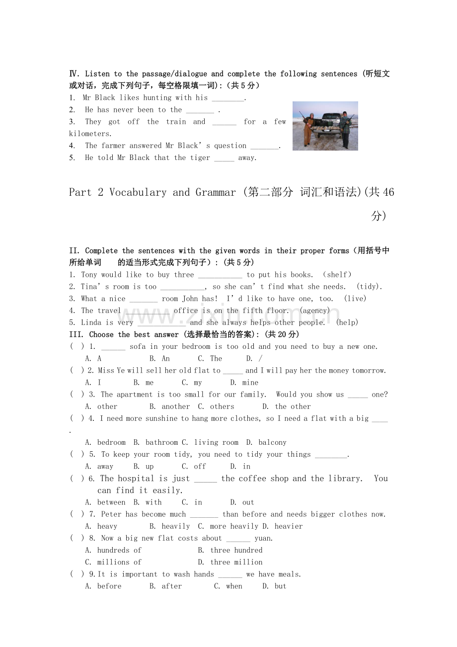 Part 2 Vocabulary and Grammar (第二部分 词汇和语法)(共46分)