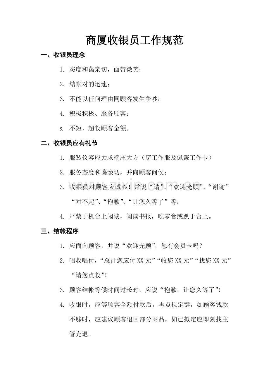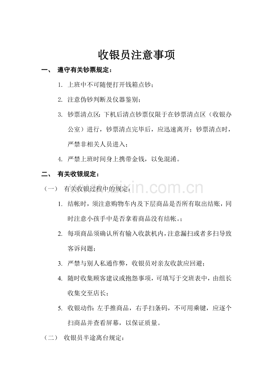 (一) 有关收银过程中的规定: