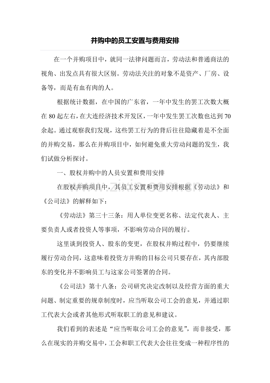 在股权并购项目中,其员工安置和费用安排根据《劳动法》和《公司法》的解释如下: