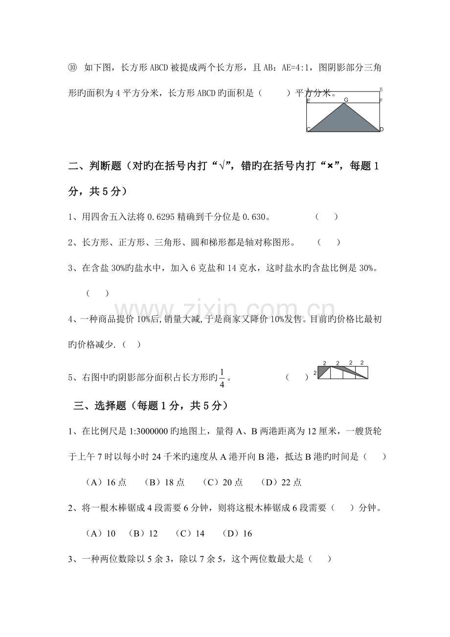 5、 右图中旳阴影部分面积占长方形旳。 ( )
