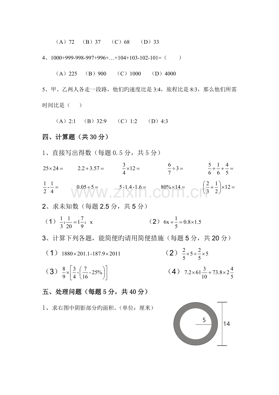 3、 计算下列各题,能简便旳请用简便措施(每题5分,共20分)