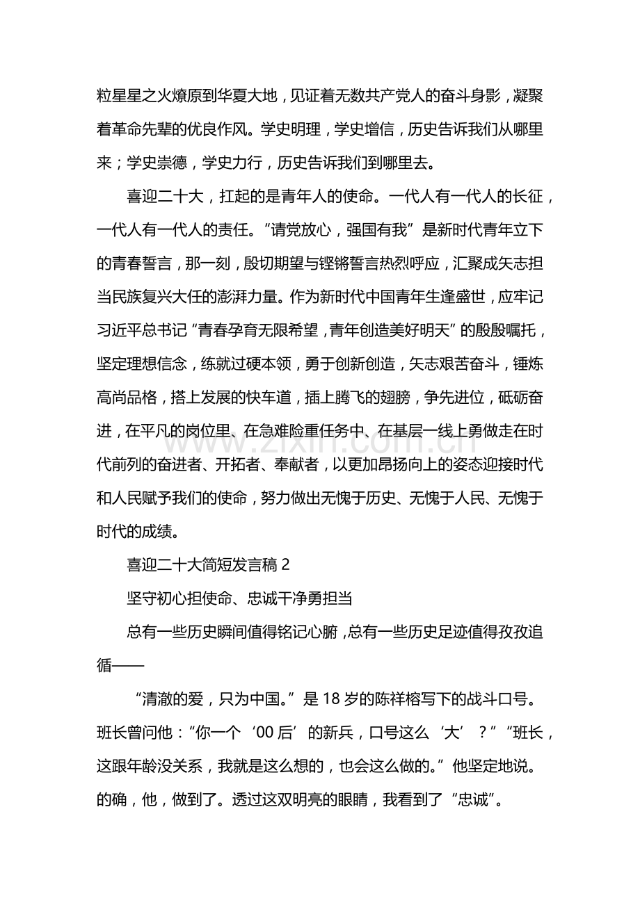 喜迎二十大,扛起的是青年人的使命。一代人有一代人的长征,一代人有一代人的责任。“请党放心,强国有我”是新时代青年立下的青春誓言,那一刻,殷切期望与铿锵誓言热烈呼应,汇聚成矢志担当民族复兴大任的澎湃力量。作为新时代中国青年生逢盛世,应牢记习近平总书记“青春孕育无限希望,青年创造美好明天”的殷殷嘱托,坚定理想信念,练就过硬本领,勇于创新创造,矢志艰苦奋斗,锤炼高尚品格,搭上发展的快车道,插上腾飞的翅膀,争先进位,砥砺奋进,在平凡的岗位里、在急难险重任务中、在基层一线上勇做走在时代前列的奋进者、开拓者、奉献者,以更加昂扬向上的姿态迎接时代和人民赋予我们的使命,努力做出无愧于历史、无愧于人民、无愧于时代的成绩。