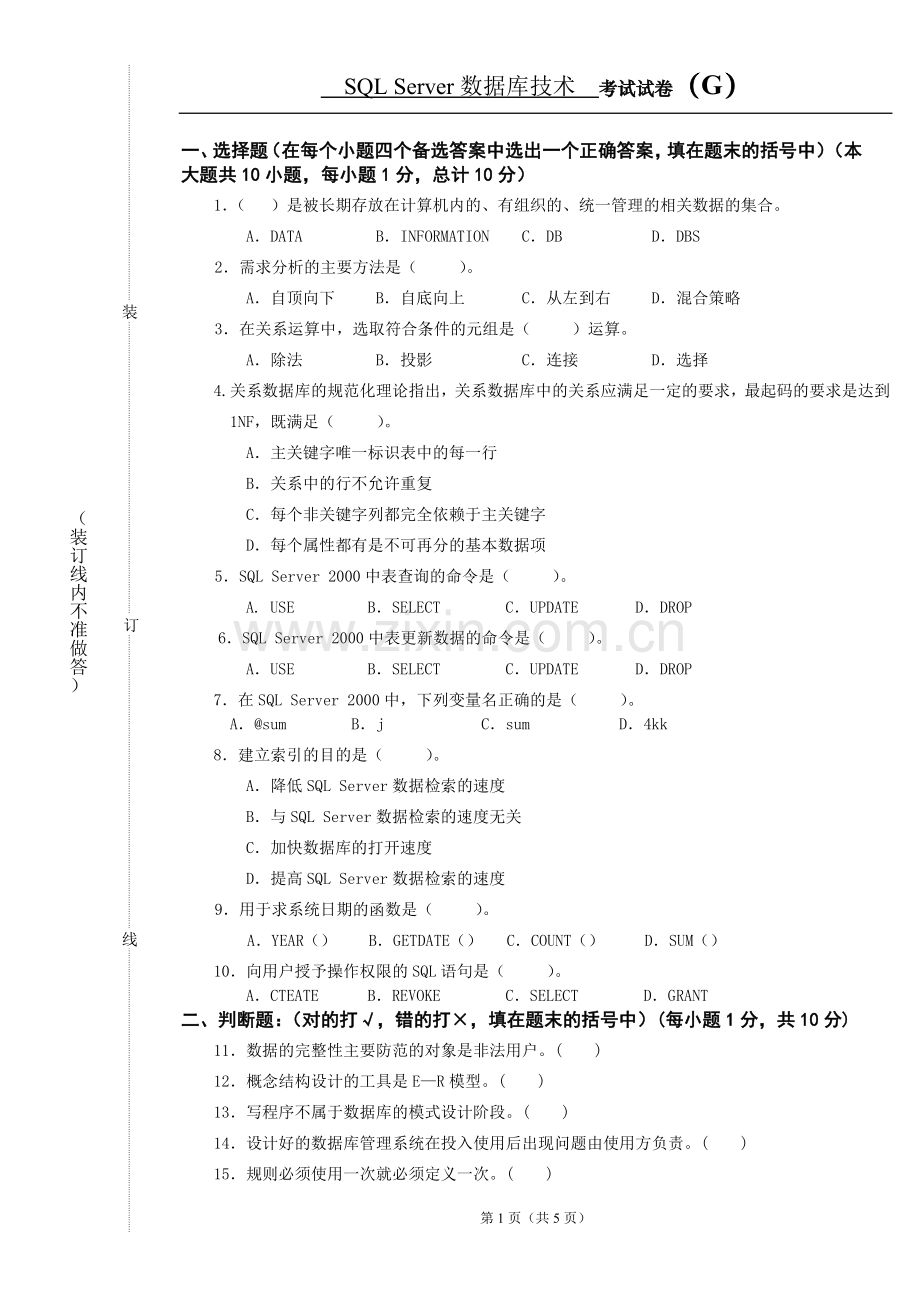 1.( )是被长期存放在计算机内的、有组织的、统一管理的相关数据的集合。
