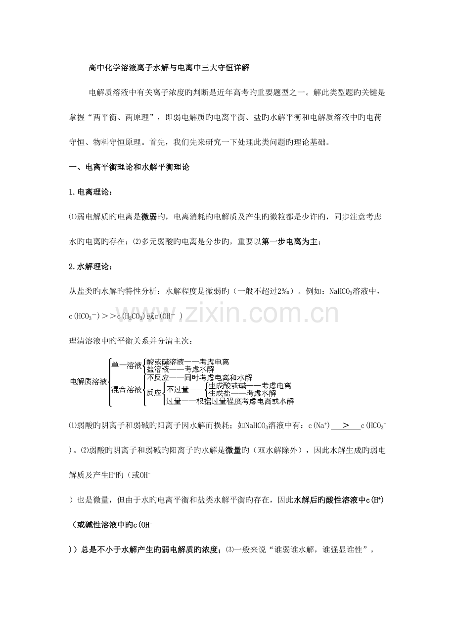 高中化学溶液离子水解与电离中三大守恒详解
