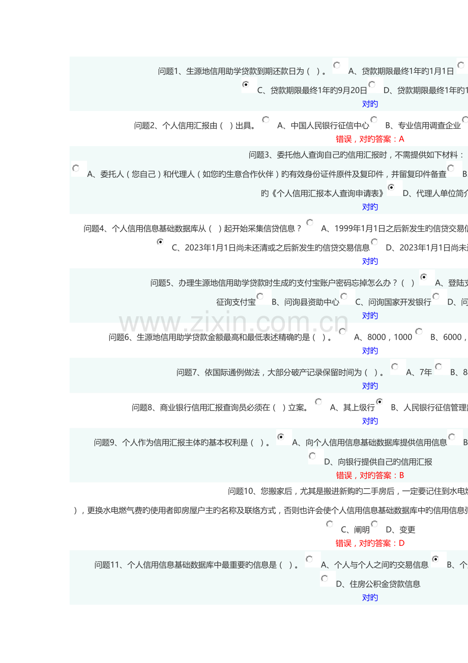 问题27、征信,记录您( )旳信用行为。 A、过去B、目前C、未来D、以上都是
