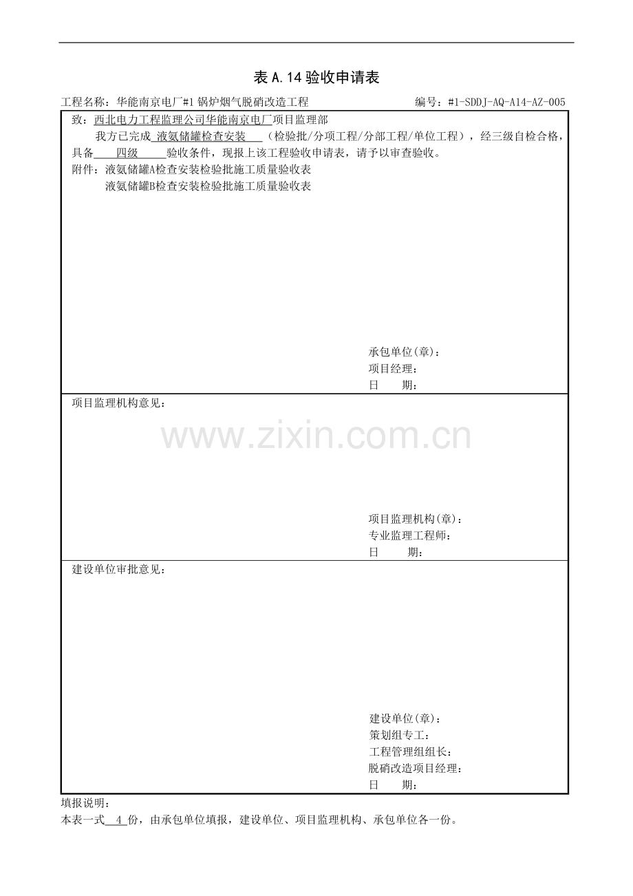 工程名称:华能南京电厂#1锅炉烟气脱硝改造工程 编号:#1-SDDJ-AQ-A14-AZ-005