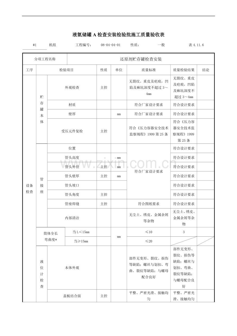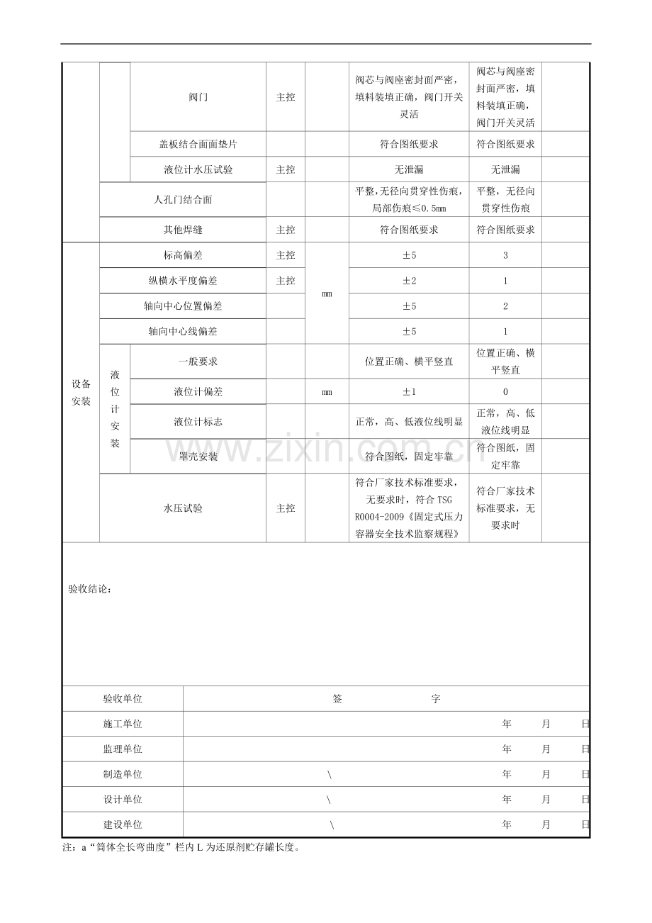 附件:液氨储罐A检查安装检验批施工质量验收表