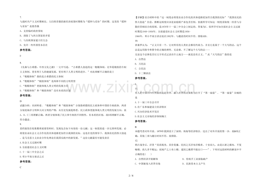8. 《先秦与古希腊:中西文化之源》一文中写道:“古希腊人创造的这一粗糙体制,比华夏精致的专制主义体制,更有利于人的健康发展,更有利于人类文明的进步。”对此理解不正确的是()