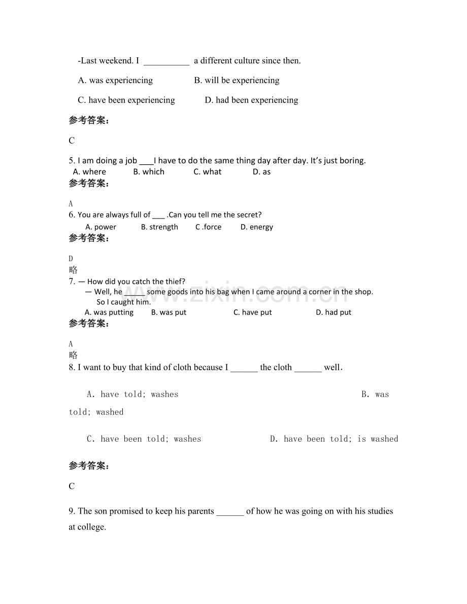 9. The son promised to keep his parents ______ of how he was going on with his studies at college.