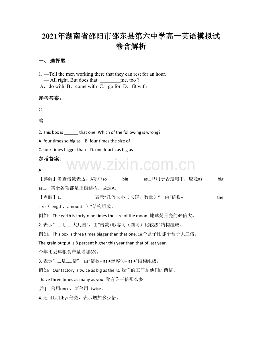 2021年湖南省邵阳市邵东县第六中学高一英语模拟试卷含解析
