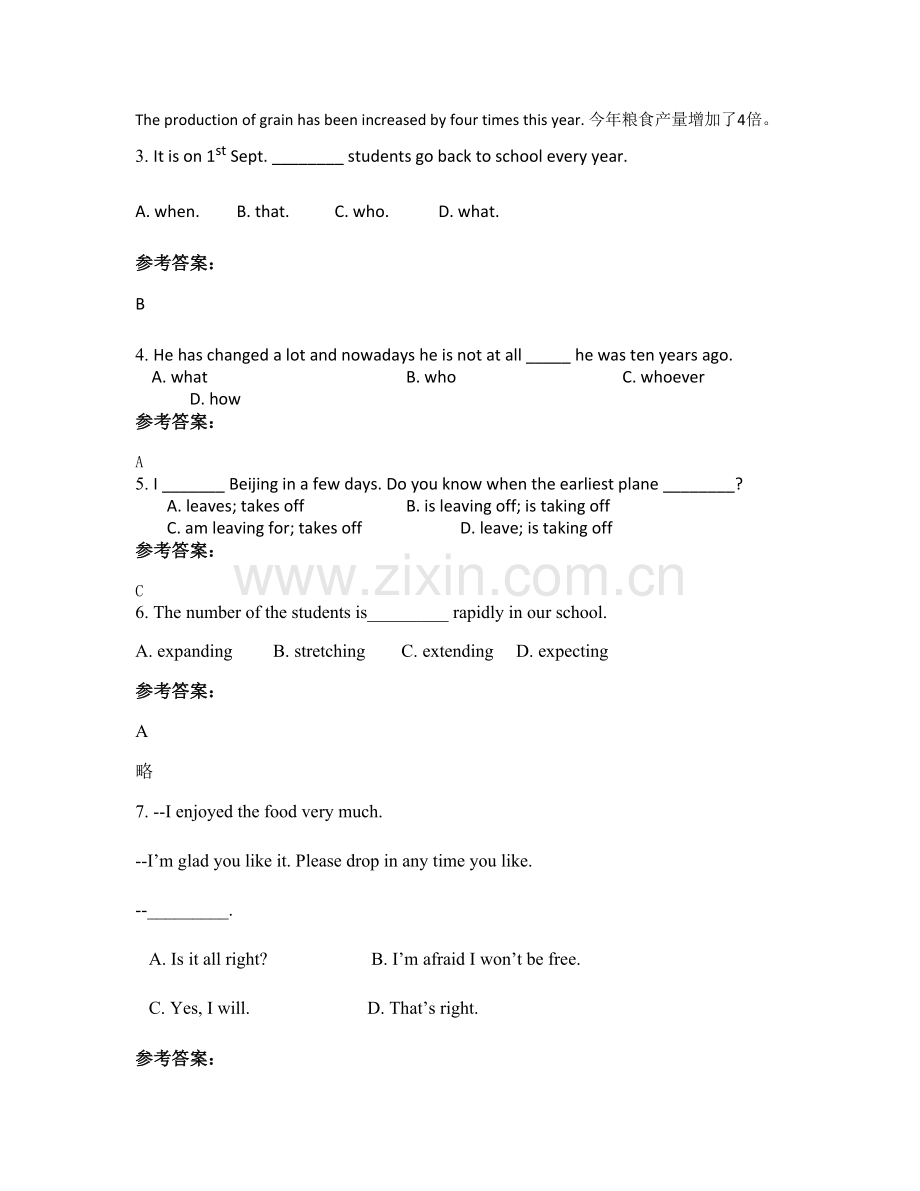 【详解】考查倍数表达。A项中so big as…只用于否定句中,应是as big as…,其余各项都是正确结构。故选A。