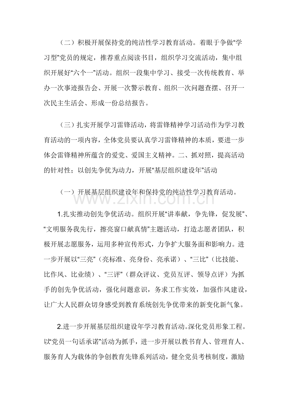 (一)开展基层组织建设年和保持党的纯洁性学习教育活动。