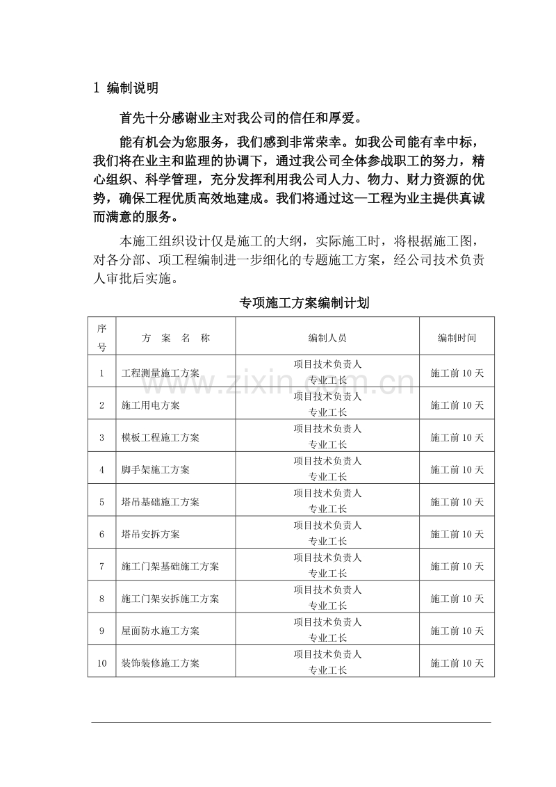 本施工组织设计仅是施工的大纲,实际施工时,将根据施工图,对各分部、项工程编制进一步细化的专题施工方案,经公司技术负责人审批后实施。