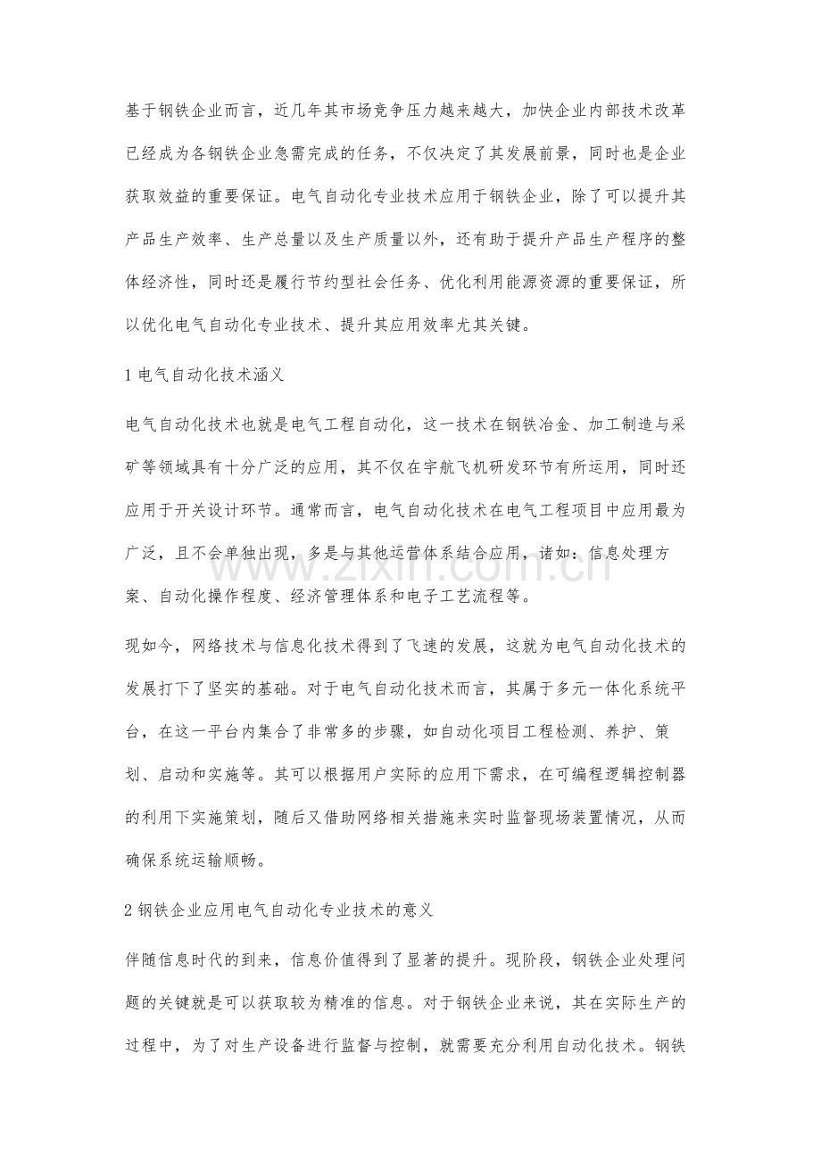 2钢铁企业应用电气自动化专业技术的意义