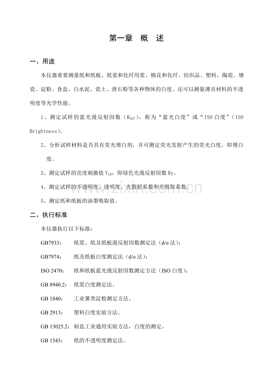 本仪器重要测量纸和纸板、纸浆和化纤用浆、棉花和化纤、纺织品、塑料、陶瓷、塘瓷、淀粉、食盐、白水泥、瓷土、滑石粉等各种物体的白度。还可以测量薄页材料的不透明度等光学性能。