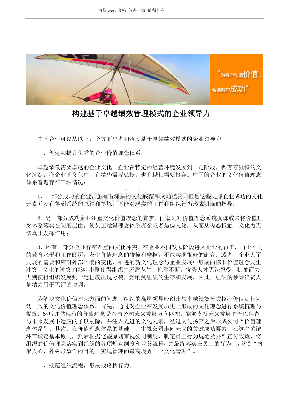 一、创建和提升优秀的企业价值理念体系。