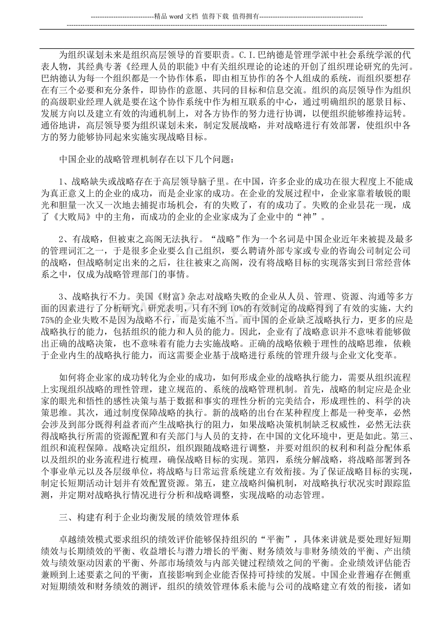 二、规范组织流程,形成战略执行力。