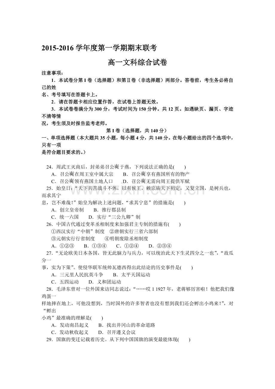 一、单项选择题(本大题共35小题,每小题4分,共140分。在每小题给出的四个选项中,只有一项