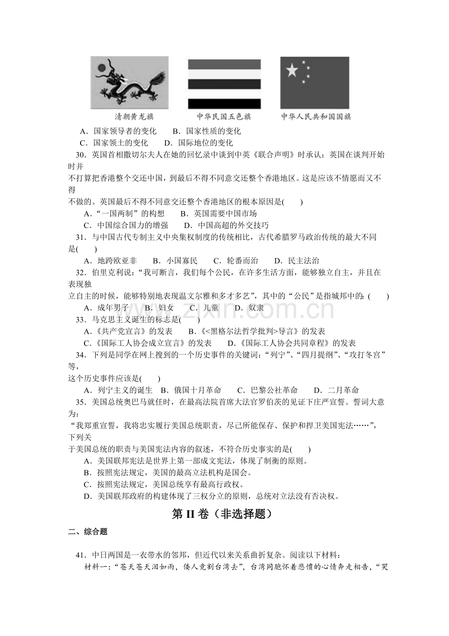 29.国旗的变迁记载着历史。从下列中国国旗的演变最能体现( )