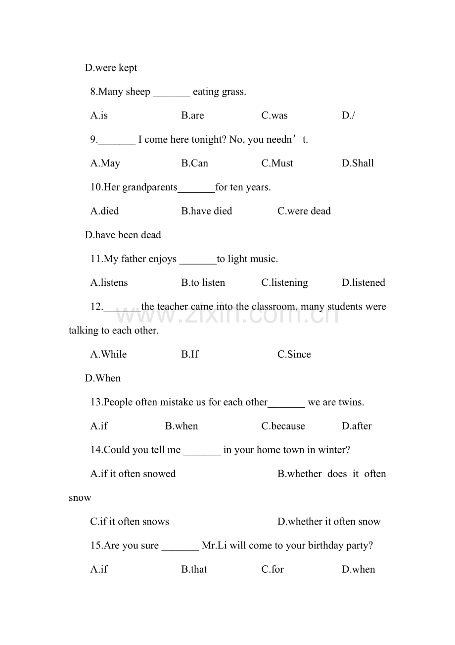 12._______the teacher came into the classroom, many students were talking to each other.