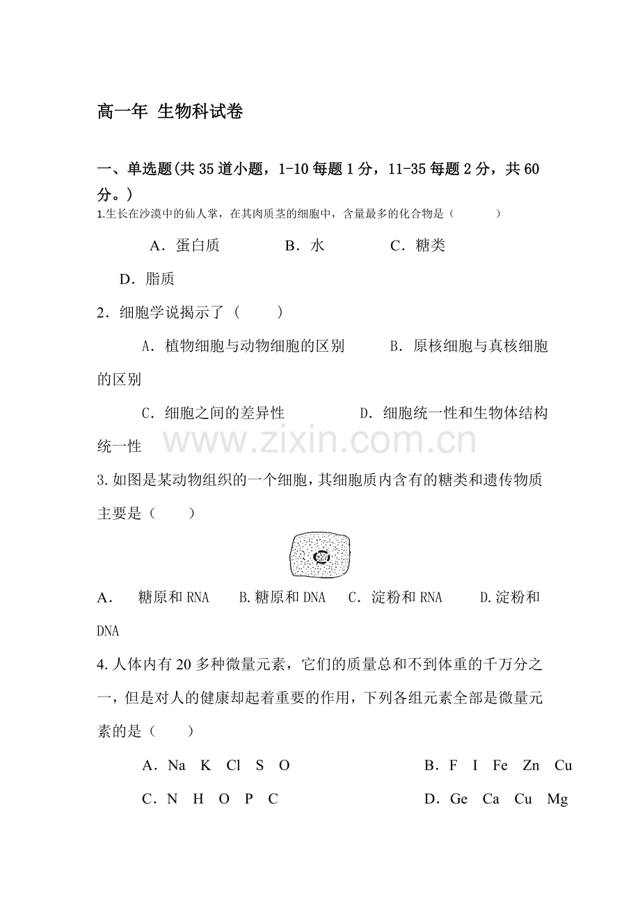 1.生长在沙漠中的仙人掌,在其肉质茎的细胞中,含量最多的化合物是( )