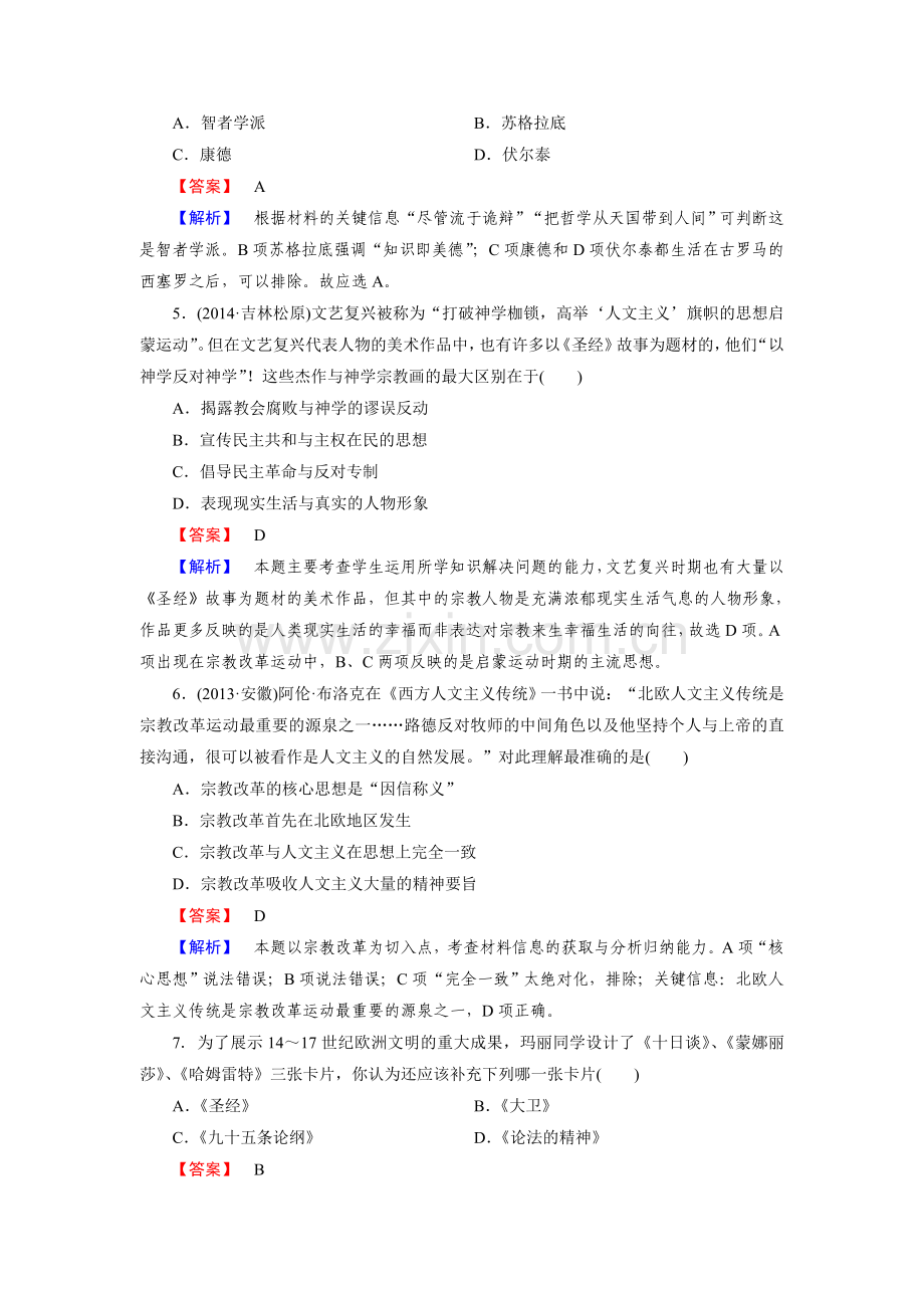 6.(2013·安徽)阿伦·布洛克在《西方人文主义传统》一书中说:“北欧人文主义传统是宗教改革运动最重要的源泉之一……路德反对牧师的中间角色以及他坚持个人与上帝的直接沟通,很可以被看作是人文主义的自然发展。”对此理解最准确的是( )
