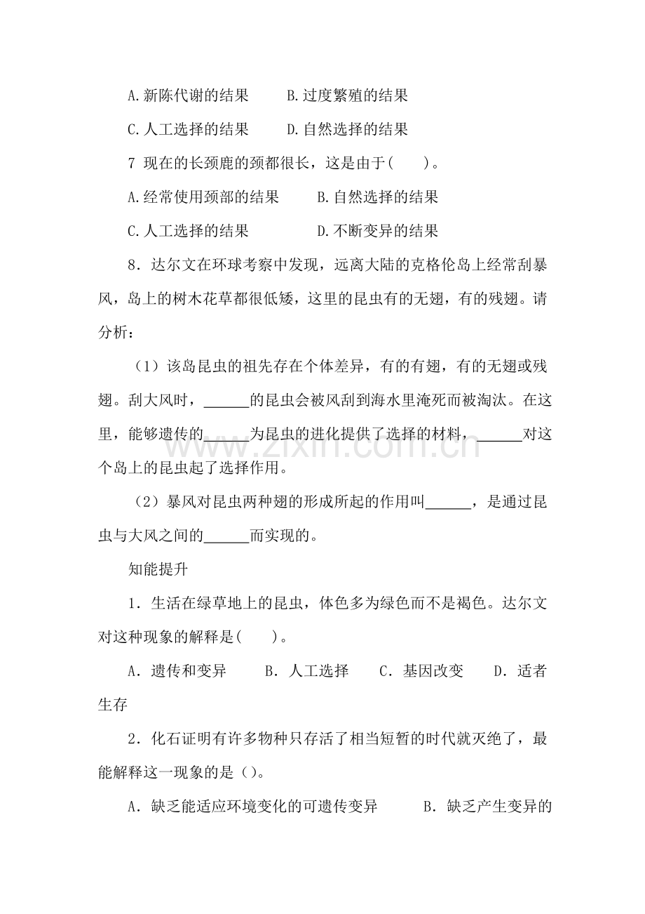 8.达尔文在环球考察中发现,远离大陆的克格伦岛上经常刮暴风,岛上的树木花草都很低矮,这里的昆虫有的无翅,有的残翅。请分析: