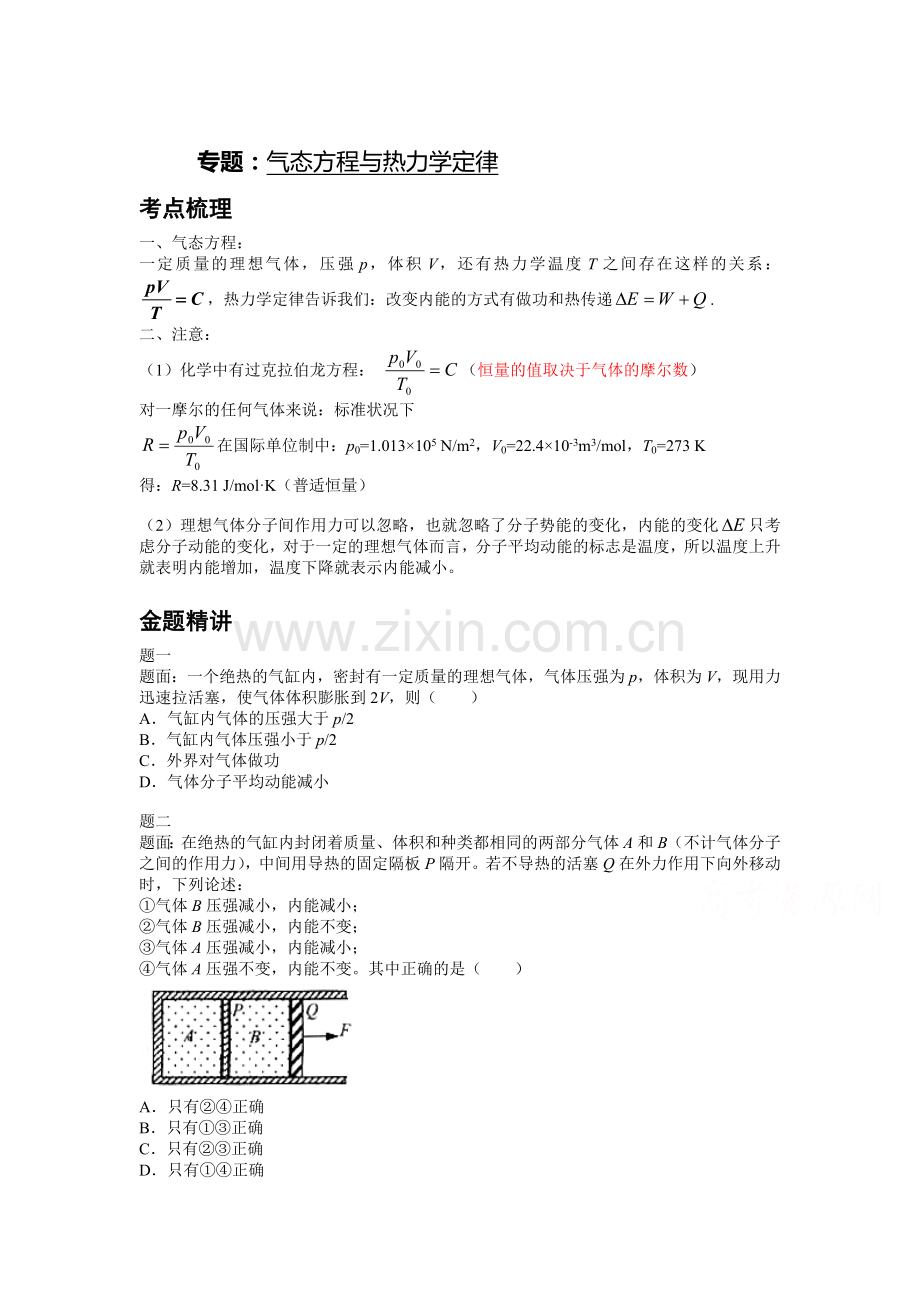 (1)化学中有过克拉伯龙方程: (恒量的值取决于气体的摩尔数)