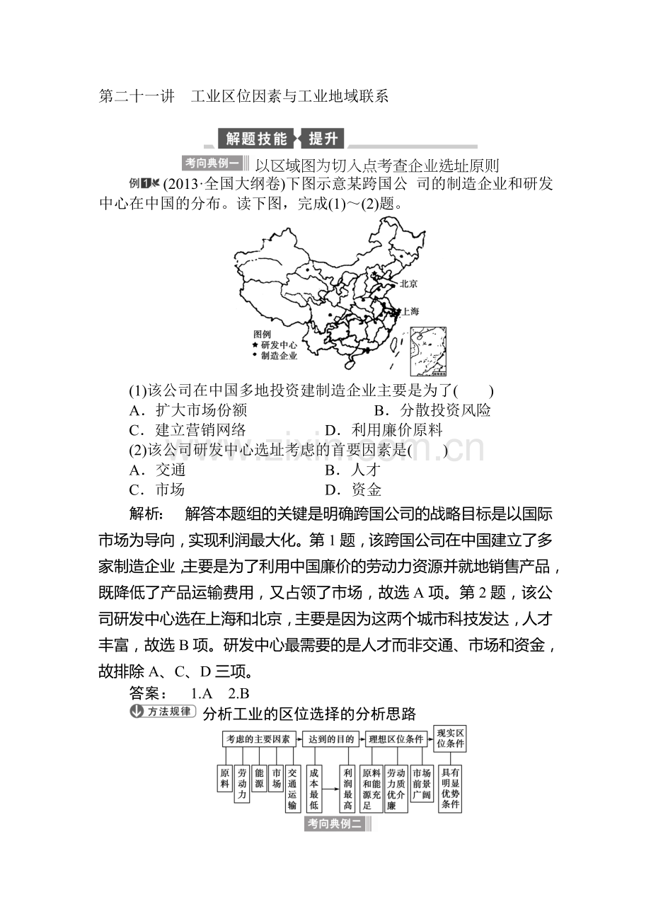 (2013·全国大纲卷)下图示意某跨国公 司的制造企业和研发中心在中国的分布。读下图,完成(1)~(2)题。