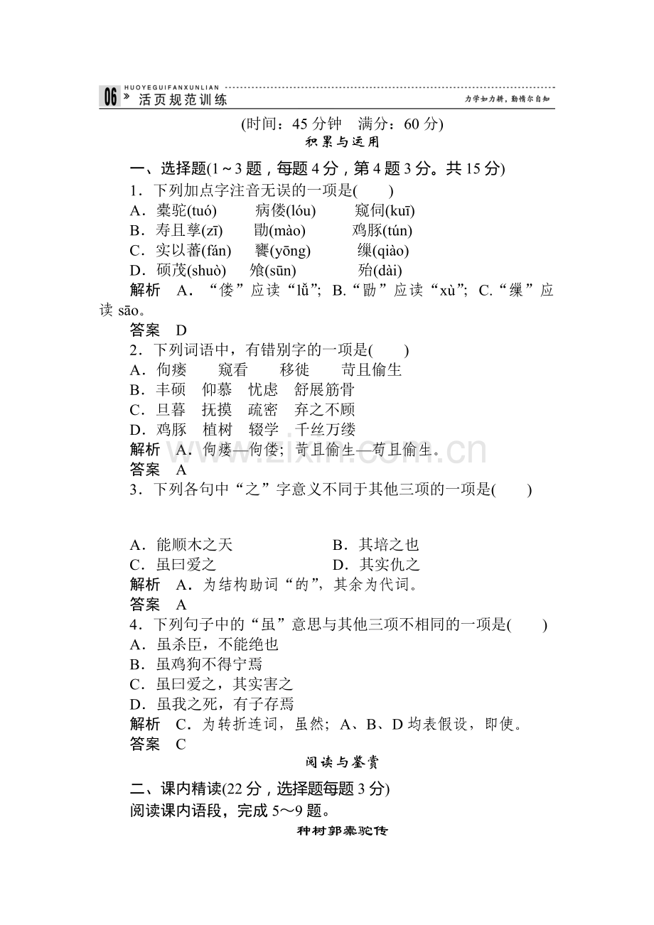 解析 根据文中“能顺木之天以致其性焉尔”一句可知。