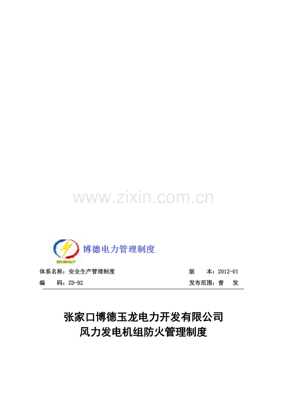 安全生产制度ZD-92 风力发电机组防火管理制度