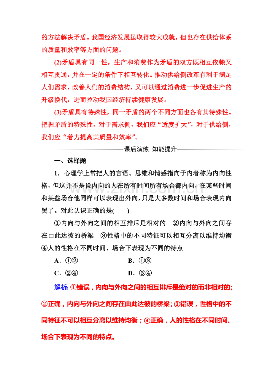 1.心理学上常把人的言语、思维和情感指向于内者称为内向性格,但这并不是说内向的人在所有时间所有场合都内向,在某些时间和某些场合他同样可以表现出外向,只是大多数时间和场合表现内向罢了。对此认识正确的是( )