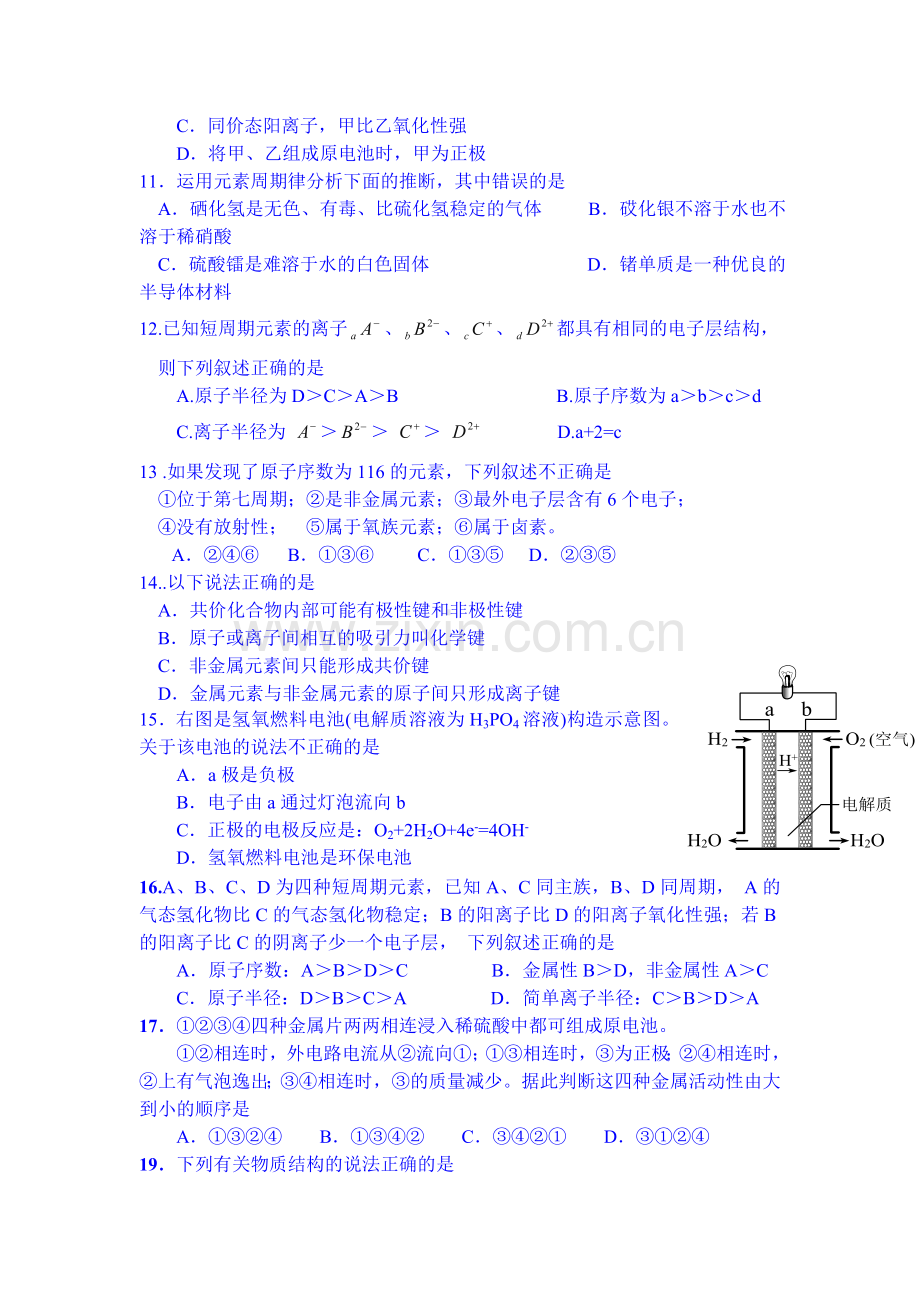 15.右图是氢氧燃料电池(电解质溶液为H3PO4溶液)构造示意图。关于该电池的说法不正确的是