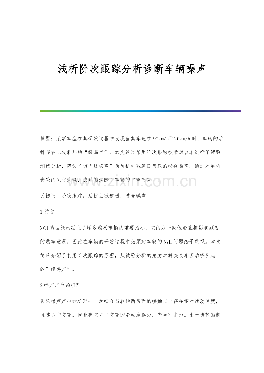 关键词:阶次跟踪;后桥主减速器;啮合噪声