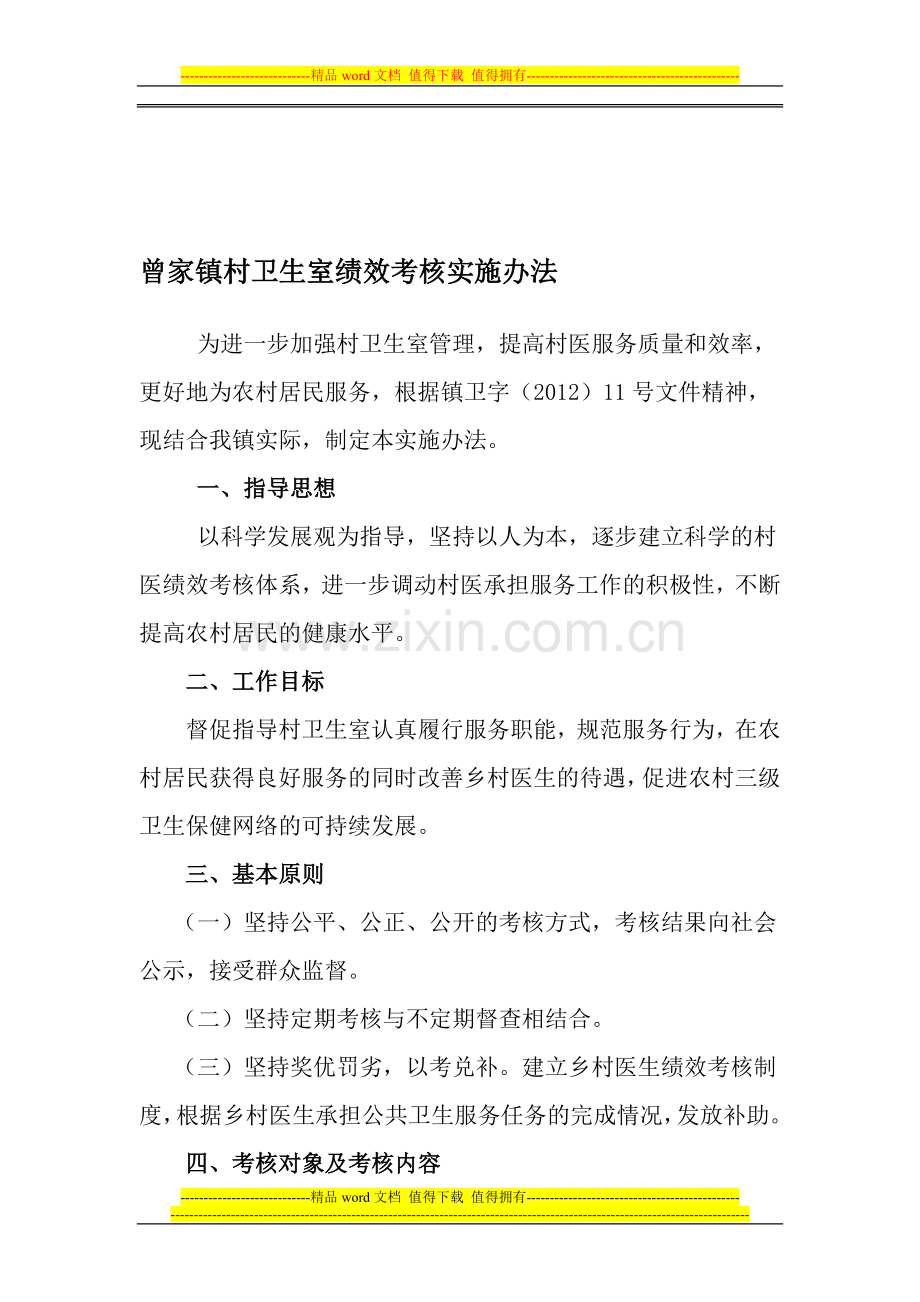 曾家镇村卫生室绩效考核实施办法
