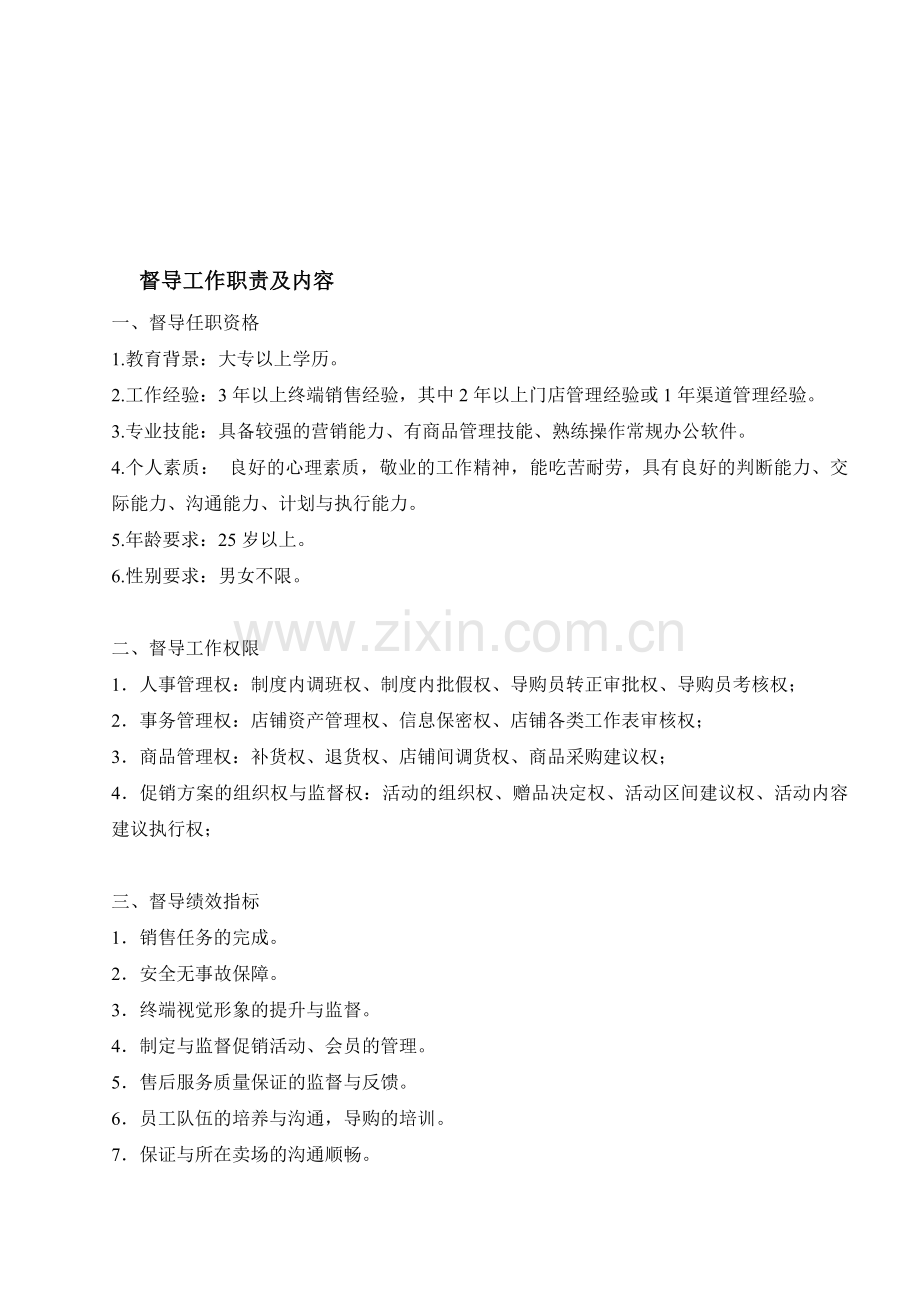 1.人事管理权:制度内调班权、制度内批假权、导购员转正审批权、导购员考核权;