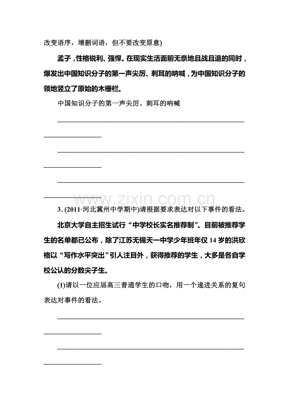 2.(2011·河北唐山一中期中)用“中国知识分子的第一声尖厉、刺耳的呐喊”作文段的开头和叙述的主体,重组下面的句子。(可以改变语序,增删词语,但不要改变原意)