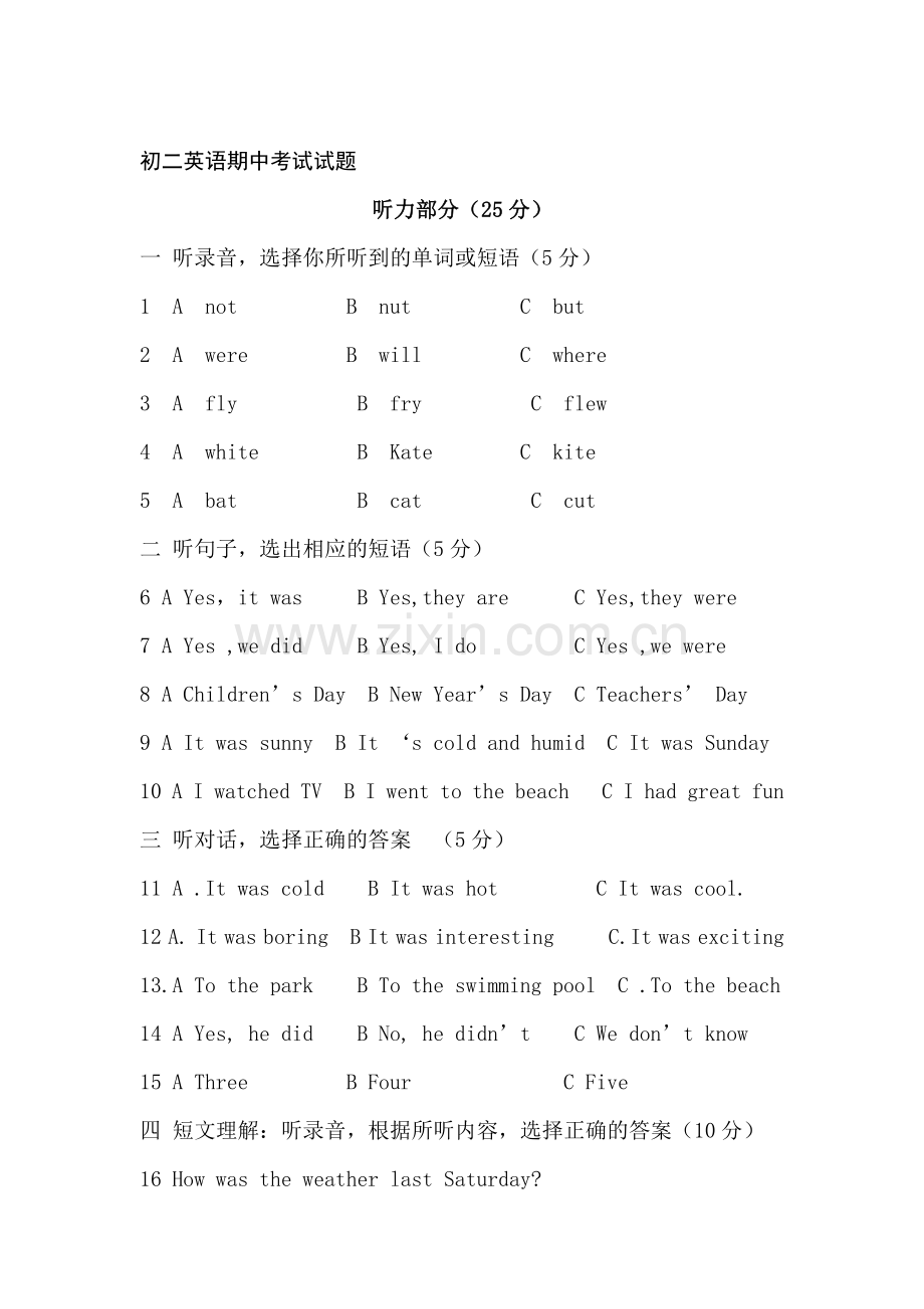 初二英语期中考试试题