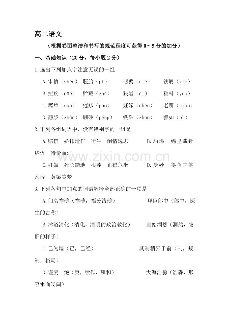 1.选出下列加点字注意无误的一组