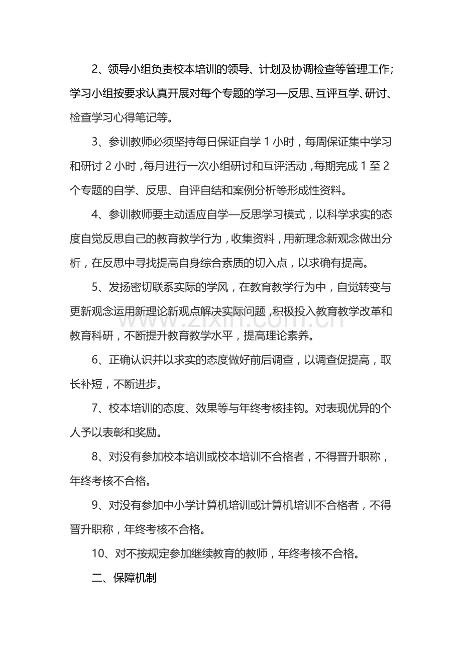 1、保证时间:每次学习培训不得迟到、早退,严格考勤,并与学校考勤奖罚制度挂钩。